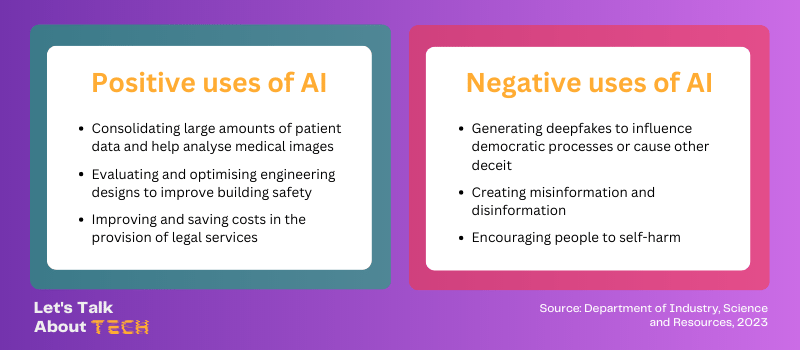 In an attempt to balance innovation and regulation, the Australian Government is focused on a number of positive and negative uses of AI: